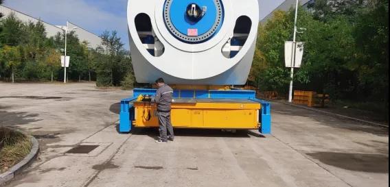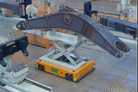 ①車橋生產(chǎn)制造工藝復(fù)雜,涉及的物料種類多樣,其中最大規(guī)格的物料滿載約18噸,對底盤要求較高;②重載AMR既有室內(nèi)運(yùn)輸場景,也有室外遠(yuǎn)距離運(yùn)輸場景,對融合導(dǎo)航的無縫切換有著極高要求;③項目地天氣雨水較多,室外物料運(yùn)輸不能長時間雨淋,且大雨天氣會對導(dǎo)航的精度、速度帶來一定影響;④項目中的10余臺裝配線磁導(dǎo)AGV與數(shù)臺室外重載AMR共用一套調(diào)度系統(tǒng),這就對調(diào)度系統(tǒng)的穩(wěn)定性、兼容性等要求較高;①根據(jù)用戶實際工況,設(shè)計了一款載重20噸的室內(nèi)外重載AMR;采用 GPS+慣導(dǎo)+激光SLAM 融合的導(dǎo)航技術(shù),可室內(nèi)外無縫切換導(dǎo)航方式,實現(xiàn)在不同環(huán)境中的穩(wěn)定運(yùn)行;車身采用翼開箱結(jié)構(gòu),使運(yùn)輸物料免受雨水侵襲,同時多重的安全保障傳感器確保了穩(wěn)定運(yùn)行;②專門為裝配線數(shù)臺重載AMR和十余臺室內(nèi)磁導(dǎo)AGV設(shè)計的調(diào)度系統(tǒng),既能滿足生產(chǎn)需求,也可滿足物流運(yùn)輸需求。①改善產(chǎn)線生產(chǎn)效率。這是國內(nèi)首例室內(nèi)產(chǎn)線+室外物流運(yùn)輸共用一套調(diào)度系統(tǒng)的AMR應(yīng)用項目,也是國內(nèi)首個汽車行業(yè)室外重載AMR應(yīng)用,節(jié)省了相關(guān)配送成本,實現(xiàn)了生產(chǎn)所需物料的精準(zhǔn)高效配送;②為用戶智能化轉(zhuǎn)型賦能。作為集團(tuán)第一個實現(xiàn)室外物料智能化轉(zhuǎn)運(yùn)項目,展示了用戶在智能化、數(shù)字化工廠建設(shè)上的亮點、看點,提升了企業(yè)生產(chǎn)的智能化、數(shù)字化水平。2、臨工智科挖掘機(jī)動臂轉(zhuǎn)運(yùn)項目通過AGV自動轉(zhuǎn)運(yùn)實現(xiàn)了挖掘機(jī)動臂的組焊、焊接、打磨、轉(zhuǎn)運(yùn)全自動運(yùn)行。由MES系統(tǒng)下發(fā)計劃,AGV與焊接工作站互聯(lián)互通,AGV由上料點取動臂物料,并自動運(yùn)輸至機(jī)器人焊接工作站。焊接完成后,自動運(yùn)送至補(bǔ)焊工位;補(bǔ)焊完成后,由AGV跨車間自動運(yùn)輸至噴漆線。難點:1.工件長度和重量較大、種類多且外形不規(guī)則,需要AGV根據(jù)不同規(guī)格實現(xiàn)精準(zhǔn)定位。2.生產(chǎn)現(xiàn)場布局緊湊,轉(zhuǎn)運(yùn)路線復(fù)雜,需要側(cè)移等功能,轉(zhuǎn)向精度要求嚴(yán)格。3.出入車間的坡度較大,室外道路環(huán)境復(fù)雜差異大。創(chuàng)新點:1.合理的結(jié)構(gòu)設(shè)計,實現(xiàn)重載AGV的前進(jìn)、側(cè)移、升降高精度定位;2.小巧車體可載重10噸以上物料,實現(xiàn)復(fù)雜路線靈活應(yīng)用;3.重載AGV滿足室內(nèi)外全工況運(yùn)行。AGV不需要人工操作,降低制造成本;AGV安全避讓保證員工的工作安全,避免因工作人員的疏忽或疲勞而造成的工傷事故和損失;AGV的操作精度更高,穩(wěn)定性更好,安全性更強(qiáng)。3、天津朗譽(yù)240噸背負(fù)式舉升重載AGV風(fēng)電行業(yè)應(yīng)用風(fēng)電行業(yè)機(jī)艙總成下線從車間內(nèi)組裝工位到車間室外成品存儲工位的運(yùn)輸;特點:過軌、坑洼復(fù)雜地面自適應(yīng);自帶稱重測試及質(zhì)心顯示;與工裝對接自動左右對中系統(tǒng);零下30°C極寒環(huán)境情況下正常工作。難點:極寒環(huán)境內(nèi)保證AGV正常運(yùn)行;創(chuàng)新點:重載AGV產(chǎn)品以大尺寸、高承載為特征,它可以將大型物件的加工、搬運(yùn)等環(huán)節(jié)以自動化形式實現(xiàn)。特別是在航空航天、軍工、風(fēng)電等應(yīng)用場景,都需要大型噸位的 AGV產(chǎn)品來滿足。通過首臺AGV順利導(dǎo)入風(fēng)電行業(yè),讓天津朗譽(yù)在風(fēng)電行業(yè)占有一席之地,比如金風(fēng)科技、明陽智能等企業(yè)陸續(xù)合作。4、航發(fā)機(jī)器人240t級重型運(yùn)輸車風(fēng)電行業(yè)應(yīng)用隨著風(fēng)力發(fā)電機(jī)組單機(jī)功率越來越大,其部件尺寸和重量也越來越大,部分機(jī)艙重量甚至超過300t。已有的風(fēng)電機(jī)組生產(chǎn)車間,存在無法適應(yīng)新型號更大功率機(jī)組生產(chǎn)和組裝的問題。行車起吊還存在無法將工件在車間之間進(jìn)行轉(zhuǎn)運(yùn),無法將工件運(yùn)到室外的問題。2020年初航發(fā)接到客戶需求,需定制額定承載200t(總重240t級)運(yùn)輸車,以實現(xiàn)風(fēng)電機(jī)組部件在車間內(nèi)各工位之間的轉(zhuǎn)運(yùn),以及將部件成品運(yùn)輸至室外進(jìn)行裝車。經(jīng)過近三個月的設(shè)計制造,運(yùn)輸車于2020年6月底順利交付客戶。