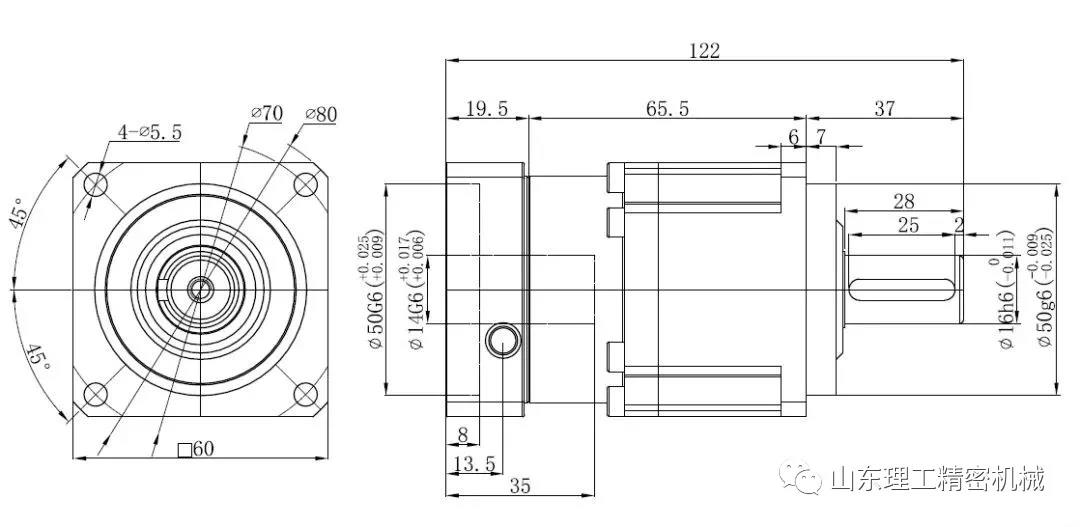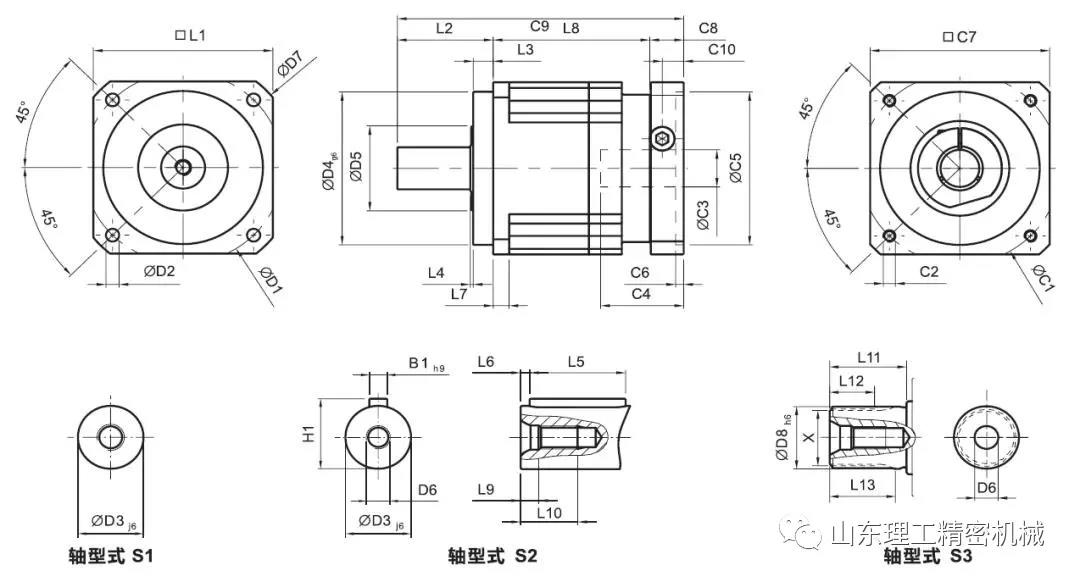 例如這樣一個(gè)圖紙,第一個(gè)接口是減速機(jī)與伺服電機(jī)的接口,這個(gè)通常是需要定制的,減速機(jī)生產(chǎn)廠家會(huì)根據(jù)客戶(hù)選擇的伺服電機(jī)的接口來(lái)定制減速機(jī)的接口,所以在和減速機(jī)供應(yīng)商溝通的時(shí)候,你需要提供伺服電機(jī)的接口給他們。